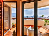 Deuxième niveau : trois chambres, deux salles de bains et deux terrasses. De l'appartement ouvre une vue magnifique sur la mer et la ville.