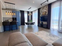 La villa est décorée dans un style méditerranéen: pierre importée naturelle combinée avec plâtre léger et pergola en bois, carreaux italiens blancs sur le balcon et la terrasse. La villa dispose de fenêtres panoramiques sur le côté sud avec vue panoramique sur la baie de Boca Kotor et le mont Lovcen, et les plafonds de plus de 3m de haut remplissent la maison avec la mer fraîche et l'air de montagne. En outre, la villa est équipée de deux terrasses, idéal pour les loisirs en plein air.