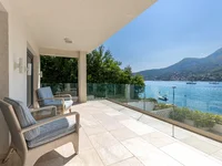 LOCATION This spacious and modern villa is located in the small traditional village in the Bay of Kotor, on the first line of the sea, just 5 km from Porto Montenegro, 8 km from Tivat airport, and an international school.   ABOUT THE PROJECT The architecture of the villa combines the best traditions of Mediterranean style with striking elements of modernism, which is also reflected in the interior. The airy and light interior space without unnecessary details allows you to focus on the most important thing - the magnificent views of the sea and nature from the panoramic windows, which are undoubtedly the main elements of the interior.  The spacious garage accommodates 2 cars and a boat (or 3 cars). The beauty of the surrounding landscapes is accentuated by the calm and natural materials of the finishes and furniture.  The underfloor water heating system, Aermec split heating and air conditioning system, and 500-liter boiler provide complete living comfort. For the technical equipment of kitchens,bathrooms, and laundry, products from such world brands as Miele, Liebherr,Bosch Professional are used. ABOUT THE VILLA The furniture and lighting in the interior are presented by items from leading Italian factories (b&b, Flos, Casamilano, Bontempi, Tonin Casa, etc.), and the main elements of decor are works of art by Russian, Georgian, and Italian authors. 4 bedrooms and two separate apartments can easily accommodate all family members, guests, and helpers. The master bedroom, occupying the entire attic floor, with a spacious walk-in closet, bathroom, two terraces, internal and external fireplaces, will leave no one indifferent. And the light-filled and airy living room with double-height ceilings will become a favorite gathering place for the family. Structure of the villa: 1st floor Entrance area with large built-in wardrobes, spacious living room with double-height ceilings, dining area and kitchen, bedroom with its own bathroom and walk-in closet, guest bathroom, apartment with a separate entrance, its own kitchen and bathroom, utility room for storing tools and workshop, technical room with technical systems. 2nd floor 2bedrooms with their own bathrooms, a room for yoga and meditation (or office)with access to a spacious terrace, laundry room, and a separate apartment with its own kitchen and bathroom. 3rd floor The entire floor is occupied by the master bedroom with a walk-in closet, bathroom,and spacious terraces. Outside Spacious sun bathing terrace in front of the house, garage for 2 cars and a boat. ‍ WHY CHOOSE THIS VILLA This villa is perfect for summer home and short term renting. Its proximity to the beach makes it a a perfect short term rental. Renting of villas is a very profitable business in Montenegro. This is an opportunity for the buyer to acquire a home that can have a return on investment.   DESCRIPTION OF THE REGION AND MUNICIPALITY With hot, Mediterranean summers and mild, sunny winters, Tivat residents enjoy just over 280 sunny days per year, leaving much time to explore the local environment, sea, mountains, historical towns and cultural heritage even off-season. Just a short drive away from the ski regions, the small coastal town is a prime base for exploring Montenegro’s wild beauty, in the aftermath of the summer hustle. ‍ Located in the UNESCO-protected Boka Bay, often referred to as Europe’s southernmost fjord, Tivat is home to an outstanding natural environment, offering panoramic sea and mountain views, exceptional beauty and local charm.