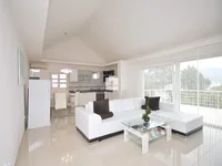 Deuxième étage :Cet étage dispose d'un salon spacieux avec une cuisine et un coin repas exceptionnellement bien équipés et conçus. Dans le salon, il y a aussi une cheminée, ajoutant à l'atmosphère chaleureuse. Depuis le salon, il y a accès à une grande terrasse semi-circulaire avec une vue imprenable. Cet étage dispose également d'une chambre avec accès à la terrasse, ainsi que d'une salle de bains avec une cabine de douche avec hydromassage et un bidet. Un escalier intérieur mène au troisième étage.