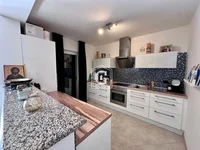 Structure de la villa: cuisine-séjour, 3 chambres, 2 salles de bains, 2 grandes terrasses. Cour avec espace barbecue.