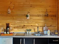 Maison entièrement légale avec une cuisinière à bois pour le chauffage.