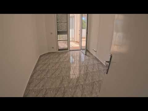 Appartement rez de chaussée, surface totale 73m2. Structure: hall d'entrée, 2 chambres, coin cuisine séparé, salle à manger, salon, salle de bains complète, salle de bains supplémentaire avec douche, terrasse devant l'entrée de l'appartement et une grande terrasse à l'arrière de la maison, donnant sur les oliveraies et vers la mer. L'appartement est spacieux, beaucoup d'espace. Une chambre dispose d'une salle de bains attenante. L'appartement est partiellement meublé et équipé, y compris les climatiseurs. 10 minutes à pied de la mer. L'appartement est légalisé.