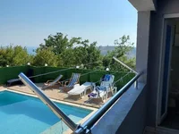 La maison est de deux étages avec une superficie totale de 220m2 sur un terrain de 270m2. A chaque étage il y a des appartements à louer: 8 chambres avec cuisines, terrasses avec vue sur la mer. Zone fermée, piscine, parking. Eau chaude des panneaux solaires, eau de la ville et d'un puits. Le remblai est à 800m, près de la gare routière, des magasins. La maison est légalisée.