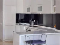 Structure: hall d'entrée, salon, salle à manger avec cuisine, chambre, salle de bains et terrasse.