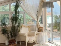 La villa est très lumineuse, avec de hauts plafonds et de grandes fenêtres.
