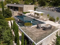 Nouvellement construit, villa de style contemporain de 526 m2 sur la première ligne de la mer à Orahovac, Kotor. La villa a une plage de 20 m de long, ainsi qu'un poste d'amarrage pour un yacht jusqu'à 25 m de long.