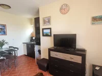 L'appartement se compose d'un hall d'entrée, un salon avec un petit coin cuisine, une chambre, une salle de bains, deux terrasses avec vue sur la mer. A côté de la maison il y a un parking, où il y a toujours assez d'espace pour garer votre voiture.