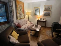- premier étage: couloir, salon avec cheminée et coin repas, salle de bains, cuisine et salle à manger avec accès à la terrasse; cette chambre peut être convertie en chambre supplémentaire