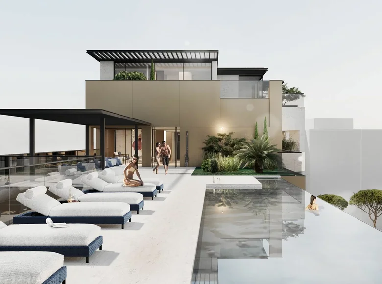 Penthouse de trois chambres (141,76m2 d'espace intérieur + 115,39m2 de terrasse) L'appartement comprend trois chambres, trois salles de bains et deux terrasses avec piscine sur le toit.