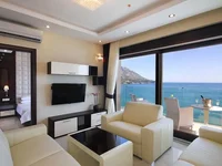 Vente Becici #4115. A vendre appartement de 2 chambres avec vue sur la mer sur la première ligne, garage privé, à 50 mètres de la mer. Superficie 80m2. L'appartement est situé dans un immeuble de onze étages apart-hotel avec une réception, construction de haute qualité, 2ème étage, 2 ascenseurs. L'appartement dispose d'une cuisine entièrement équipée avec toutes les commodités (cuisinière plate, four, lave-vaisselle, réfrigérateur), salle à manger, comptoir de bar et tabourets de bar, un salon luxueusement meublé avec des meubles en cuir coûteux qui peuvent être convertis en un lit pour deux, 2 chambres et une terrasse avec une clôture en verre avec une vue incroyable, entièrement ouvert sur la belle plage de Becici et la mer. Chaque chambre et salon dispose d'un climatiseur spécial. Chaque appartement dispose d'une céramique de haute qualité et de sols chauffés, un éclairage coûteux, TV LCD, un coffre-fort, une alarme incendie, un bouton SOS dans la salle de bains, stores électriques. La spécificité de ces appartements est que chaque lit a une vue sur la mer. Une autre caractéristique exclusive est que le bâtiment lui-même est directement relié au chemin, de sorte que les résidents et les invités de ce bâtiment sont libérés du stress de traverser une rue occupée, mais le chemin les mène directement au remblai et à la plage. Il y a une option pour acheter une place de parking dans le garage séparément.
