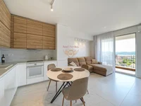 Appartement se compose: cuisine avec salle à manger, salon, deux chambres, deux salles de bains et terrasse. De terrasse ouvrant belle vue sur la mer.