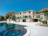 Nouvelle villa en pierre de style méditerranéen, construite à environ 100m au-dessus de la route côtière principale, entourée de villas de luxe, riche forêt de chêne, et des oliviers, avec vue panoramique spectaculaire sur la mer.