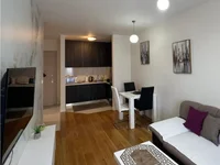 Appartement d'une chambre 42m2 A louer: Un appartement d'une chambre luxueusement équipé (42m2) dans le complexe Zetagradnja nouvellement construit, Central Point, Podgorica. L'appartement est situé au 3ème étage d'un immeuble avec deux ascenseurs. Il est entièrement meublé avec des meubles neufs et tous les appareils nécessaires, et est prêt à emménager immédiatement. 🚫 Les animaux domestiques ne sont pas admis. 📅 La durée minimale de location est d'un an, avec un dépôt de garantie requis.