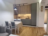 Izdaje se dvosoban stan površine 56 m² u City kvartu, u zgradi Acton, na trećem spratu sa liftom. Stan je moderno opremljen i kompletno namješten, a ispred zgrade se nalazi javni parking. Nalazi se na odličnoj lokaciji, u neposrednoj blizini svih važnih sadržaja. Mjesečna kirija iznosi 950 €.