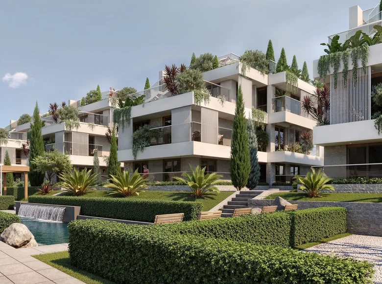 Chaque immeuble du complexe comprend 5 appartements : le rez-de-chaussée comprend une et deux chambres, le premier étage comprend également des appartements d'une et deux chambres, tandis que le troisième étage abrite un spacieux penthouse avec une terrasse privée sur le toit. L'architecture est moderne et s'intègre harmonieusement dans le paysage méditerranéen. Les matériaux naturels sont utilisés dans la finition, et le territoire complexe est orné d'oliviers et de plantes ornementales, créant une atmosphère agréable d'intimité et de tranquillité.