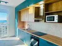 Sale ID5061. For sale a bright new apartment in the Fablife residential complex with a panoramic view of the sea, mountains and Becici. Area - 76 sq.m. Floor - 9, 2 bedrooms, 2 bathrooms. Bright apartment after renovation and furnishing with floor-to-ceiling windows in a modern residential complex with a living room and kitchen area, 2 bedrooms, 2 bathrooms, a terrace overlooking the sea, mountains and Becici. The apartment is in the process of furnishing, a kitchen with all new appliances is installed. The living room has three windows, a large bathroom has underfloor heating. Ceiling height - 2.78 m. The sea view will not be blocked by new buildings. The house is located in a growing modern area with shops and restaurants. To the sea and the sandy beach of Becici 300 sq.m. There is an opportunity to purchase a parking space on the minus first floor for 20,000 euros.