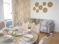 Structure de l'appartement: Cuisine-séjour, 2 chambres, 1 salle de bains, une immense terrasse avec vue panoramique sur la mer et les montagnes.