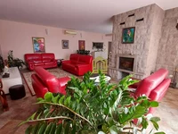 Au premier étage de la maison il y a un salon spacieux avec une cuisine, salle à manger et cheminée, ainsi qu'une salle de bains et un sauna, qui a un accès séparé à la piscine.