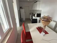 La disposition comprend une cuisine et un coin repas séparés, rendant l'espace plus fonctionnel et confortable pour la vie toute l'année. L'appartement dispose de deux terrasses. Grâce à son aménagement bien conçu et à sa taille généreuse, il est possible de créer une deuxième chambre si nécessaire.
