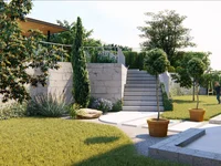 Les villas sont en construction. À ce jour, tous les travaux de construction ont été achevés, la menuiserie et les structures de fenêtres sont en cours d'installation.