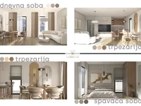 Le salon spacieux avec de grandes surfaces en verre offre beaucoup de lumière naturelle et une atmosphère ouverte et aérée, tandis que la cuisine moderne équilibre esthétique et fonctionnalité. Deux chambres confortables assurent la tranquillité et l'intimité, et la salle de bain élégamment conçue garantit un confort haut de gamme.