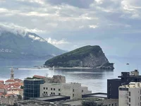 Bright one-bedroom apartment for sale in Budva with panoramic views of the sea, Old Town, and St. Nicholas Island. Convenient location — around 5 minutes walking distance to the beach, promenade, and Budva center.