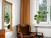 L'appartement est situé au rez-de-chaussée dans une maison d'avant-guerre de 1930, la façade du bâtiment a subi une rénovation complète. La propriété est incroyablement atmosphérique, parquet en chêne a été conservé en très bon état.