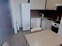 La cuisine est équipée d'un lave-vaisselle, d'une cuisinière avec un four. La salle de bains dispose d'un sèche-linge, baignoire, placard intégré. Appartement lumineux, ensoleillé et calme.