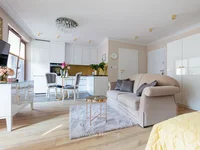 The apartment has 37m2 and consists of a spacious living room with a kitchenette, a beautiful bathroom with a shower and a balcony. The view from the windows is southwest.
