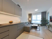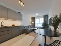 la cuisine est équipée de tous les appareils modernes nécessaires, y compris un réfrigérateur avec congélateur, un four, une cuisinière électrique et un lave-vaisselle. Le salon dispose d'un canapé pliant, d'une table à manger, de 2 chaises et d'une table basse; - une chambre d'une superficie de 12,2 m2, avec un lit double, 2 tables de chevet et une armoire intégrée.