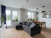L'appartement comprend un salon avec kitchenette, trois chambres spacieuses, un débarras/salle à manger, une salle de bains et deux balcons. Il y a trois ans, l'appartement a fait l'objet d'une rénovation majeure : fenêtres, radiateurs et câblage électrique ont été remplacés. L'appartement est à deux côtés, avec des fenêtres orientées est et ouest.
