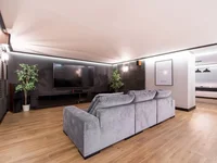 La maison est faite avec un haut niveau de finition selon la conception du bureau d'architecture Suspenzo, des matériaux naturels de haute qualité ont été utilisés. La surface habitable est de 185,79 m2 et la parcelle est de 544 m2.