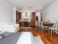 L'appartement est décoré dans un style moderne, se compose d'un salon spacieux avec une cuisine (31.38 m2), une chambre (12.61 m2), une grande salle de bains (5.16 m2) et un hall (6.57 m2).