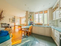 A vendre est un appartement de 4 pièces de 101,33 m2 au deuxième étage d'une maison en brique de quatre étages construite en 1994. Le salon spacieux de 29,14 m2 est équipé d'une table de billard qui peut être transformée en table à manger. Il y a aussi un projecteur avec une image allant jusqu'à 100 pouces. La cuisine est de 10.15 m2 avec des meubles en chêne blanchi de la société italienne Tomassi et des équipements de haute qualité (Liebherr, Bosch). La première chambre est de 14.58 m2 avec un lit double, des meubles en bois et un bureau. Les deuxième et troisième chambres sont les mêmes dans la zone - 12.23 m2 chacune, avec une sortie vers la terrasse. Le couloir est de 17.30 m2 avec un grand placard intégré. La salle de bains est de 3.96 m2 avec une baignoire et un mur miroir, une toilette séparée est de 1.74 m2. Terrasse 7 m2. L'appartement dispose également d'un grand débarras de 16,77 m2, qui peut être utilisé comme atelier. Garage à l'intérieur du bâtiment de 22.97 m2, équipé d'eau et d'électricité, avec portails automatiques et une hauteur de 3.45 m, d'une valeur PLN 250 000. Les plafonds de l'appartement sont de 300 cm de haut. Le salon et le couloir ont parquet en chêne, la cuisine, la salle de bains et les toilettes ont des carreaux de porcelaine, et les chambres ont tapis. Le câblage en cuivre est installé. Les fenêtres du salon et la cuisine font face à l'est, les chambres font face à l'ouest.