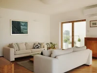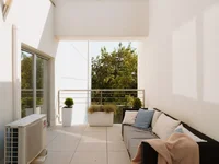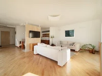 L'appartement, d'une superficie de 147.20 m2, dispose d'un intérieur lumineux et moderne et d'un aménagement fonctionnel. Le spacieux salon relié à la salle à manger mène directement à l'une des deux terrasses, offrant une vue sur la verdure environnante. La cuisine séparée, entièrement équipée, offre un confort pour la cuisine quotidienne. La section privée comprend trois chambres, dont une chambre principale avec salle de bains privative et accès à la deuxième terrasse. De plus, il y a des toilettes dans l'appartement.