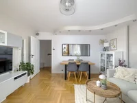 En 2018, l'appartement a fait l'objet d'une rénovation complète, au cours de laquelle l'installation électrique a été remplacée, les salles de bains ont été rénovées et des finitions en douceur ont été appliquées. Le salon meublé rayonne de chaleur et de convivialité, avec des grains de haute qualité et un sol en chêne. La cuisine est entièrement équipée d'appareils modernes - réfrigérateur avec congélateur, four, plateau à induction, lave-vaisselle, évier et hotte, tous finis avec un élégant comptoir. L'appartement est en excellent état technique.
