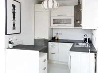 Superficie 34 m2 + balcon: Spacieux salon relié à la cuisine, chambre séparée confortable. Grandes fenêtres orientées sud et ouest.