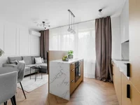 La disposition comprend: un salon avec une kitchenette et une sortie vers un grand balcon, une chambre, une chambre, un hall et une salle de bains. L'appartement dispose de nouveaux meubles, appareils électroménagers, climatisation et Internet.
