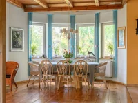 La maison est entourée de verdure, sur le terrain il ya un jardin bien entretenu avec de grands arbres, un étang décoratif, une terrasse. À distance de marche se trouve la forêt de Kabacki - un endroit idéal pour la marche, le jogging et le vélo. La région dispose d'infrastructures bien développées: Biedronka, Lidl, Auchan, Selgros, OBI, Leroy Merlin, magasins Decathlon, ainsi que des écoles, jardins d'enfants, pharmacies, parcs et clubs sportifs.