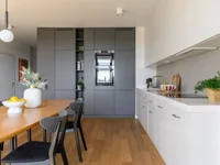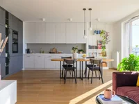 L'appartement se compose d'une cuisine spacieuse, ouverte sur le salon, équipée d'appareils Samsung modernes (y compris le four, plaques à induction, micro-ondes) et Whirlpool lave-vaisselle. La disposition réfléchie comprend deux chambres avec des fenêtres orientées est, offrant l'accès à la lumière naturelle le matin et le confort thermique en été. Il y a également une salle de bains spacieuse avec une douche à l'italienne haut de gamme, et un espace supplémentaire sous la forme d'une buanderie verrouillable.