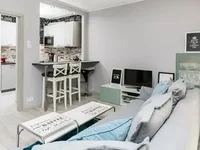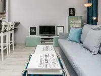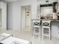 L'appartement de 30 mètres carrés est un espace moderne qui offre des conditions de vie confortables grâce à sa disposition bien pensée et des solutions esthétiques. Son plus grand atout est une grande terrasse de jardin, et l'intérieur se distingue par sa fonctionnalité et son élégance.