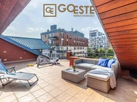 Appartement de deux étages à vendre sur la zone verte de Mokotów de 202,29m2 avec balcon et grande terrasse. L'appartement est situé sur les 2 derniers étages de l'immeuble avec ascenseur, surveillance et sécurité 24 heures sur 24 dans tout l'immeuble. 206 Wilanowska Rue