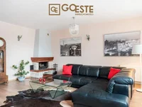 Au premier étage se trouve le hall, à partir duquel la porte à deux ailes à droite vous mènera à un salon spacieux d'une superficie d'environ 31 m2. Il y a une cheminée dedans qui vous donne un charme et une humeur extraordinaires. Les fenêtres vont au sud. Du salon il y a une sortie vers un balcon confortable (5.1 m2).