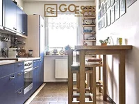 Cuisine entièrement équipée avec électroménager (réfrigérateur, plaque de cuisson, hotte, four)