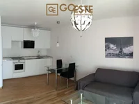 Appartement entièrement équipé et meublé, fini dans un haut niveau. Dans les appareils de cuisine (réfrigérateur, lave-vaisselle, four, plaque de cuisson). Salle de bains avec douche. Dans la chambre et le hall du placard dans le bâtiment.