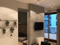 Appartement entièrement équipé et meublé, fini dans un haut niveau. Dans les appareils de cuisine (réfrigérateur, lave-vaisselle, four, plaque de cuisson). Salle de bains avec douche. Dans le placard du bâtiment. Un nouvel appartement, personne n'y a jamais vécu.