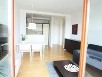 Appartement entièrement équipé et meublé, fini dans un haut niveau. Dans le salon canapé, TV, table avec chaises, appareils de cuisine (plaque, réfrigérateur, four, lave-vaisselle), lit de chambre et armoire. L'appartement est lumineux, calme et ensoleillé.