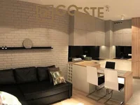 Appartement entièrement équipé et meublé, fini dans un haut niveau. Dans les appareils de cuisine (réfrigérateur, lave-vaisselle, four, plaque de cuisson). Salle de bains avec douche. Dans le placard du bâtiment. Un nouvel appartement, personne n'y a jamais vécu.