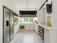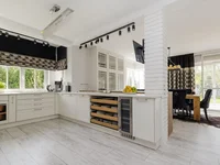 Dans le grenier de plus de 80 m2 il y a deux chambres séparées et une salle de bains avec douche. La maison est équipée de chauffage au sol, d'une chaudière à gaz Viessmann et d'un adoucisseur d'eau Viessmann AQUAHOME Duo. Le toit est recouvert de carreaux de céramique, fenêtres en bois avec des barres de vitrage, planchers sont posés avec des carreaux de Parady, escaliers en chêne, murs dans le salon et la chambre sont finis avec du bois naturel. La cuisine est en bois naturel avec un comptoir en pierre, des appareils KitchenAid (y compris un cabinet à vin et un réfrigérateur à deux portes). La maison dispose d'une cheminée STUV élégante, les salles de bains disposent de produits sanitaires Villeroy & Boch et de robinets NK.